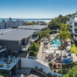 Great selection of restaurants, cafes & bars within easy walking distance, particularly enjoyed Mavericks for the food, location overlooking the Marina and friendly staff. Large Woolworths to get all of your food for self-catering. Great local bus service to see the wider area plus ferry to Tea gardens and Dolphin cruises - what is not to like! The staff at the Tourist Information office were very helpful.