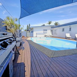 We loved hanging out at the Tuncurry Rock Pool with its small beach for kids to swim and play. There's a cafe right next door and council run toilet facilities. The nearby kids playground looks relatively new, and exploring 9 Mile Beach on the other side of the breakwater was excellent. Parking was close to the beach and playground so it was easy.