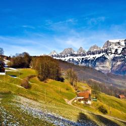 There really is no shying away from adventure in Switzerland. Sky-high mountains, glinting glaciers, emerald lakes and epic train journeys – it’s everywhere you look, effectively making this multilingual country Europe’s prime adventure playground. In the south, Zermatt ski resort brims with cozy chalets beneath the towering hulk of 4,478-metre-high Matterhorn Mountain. Glide down the well-groomed pistes, or treat yourself to some off-piste tree runs – snow conditions here are rarely anything but perfect. Meanwhile, the frozen surface of Lake St. Moritz, to the east, plays host to unusual sports like skijoring, ice cricket and ‘White Turf’ horse racing. Come summer, snow and ice give way to shimmering lakes and great, green forests. It’s best appreciated in Interlaken, either from the 1,300-metre-high Harder Klum observation deck, or with a thrilling tandem paragliding experience through the valley. Alternatively, take a ride on an old-time steamboat to capture fairytale views of the fishing villages, farmhouses and hilltop fortresses either side of this central destination. All this rural beauty combines with a variety of captivating cities – capital Bern with its medieval old town, Germanic Basel and its head-turning architecture, chic Geneva and its taste for luxury, and sprawling Zürich with its artsy edge, riverside bars and fondue restaurants. There’s no shortage of accommodation options in Switzerland, with an abundance of hotels to choose from, plus many lodges, chalets and lakeview apartments available to rent throughout the country.